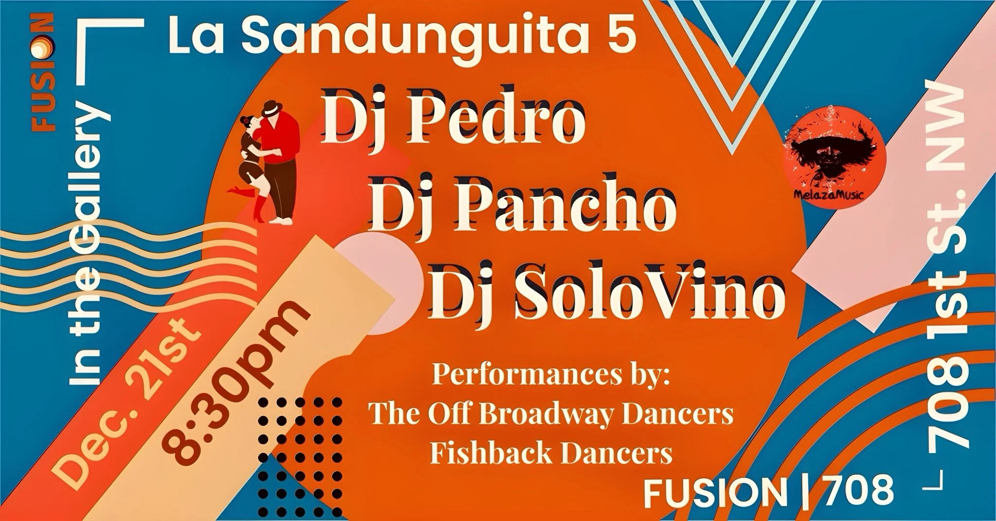 Come to FUSION | 708 on Saturday, December 21st, from 8:30 PM–11:00 PM for La Sandunguita 5 with DJ Pancho.