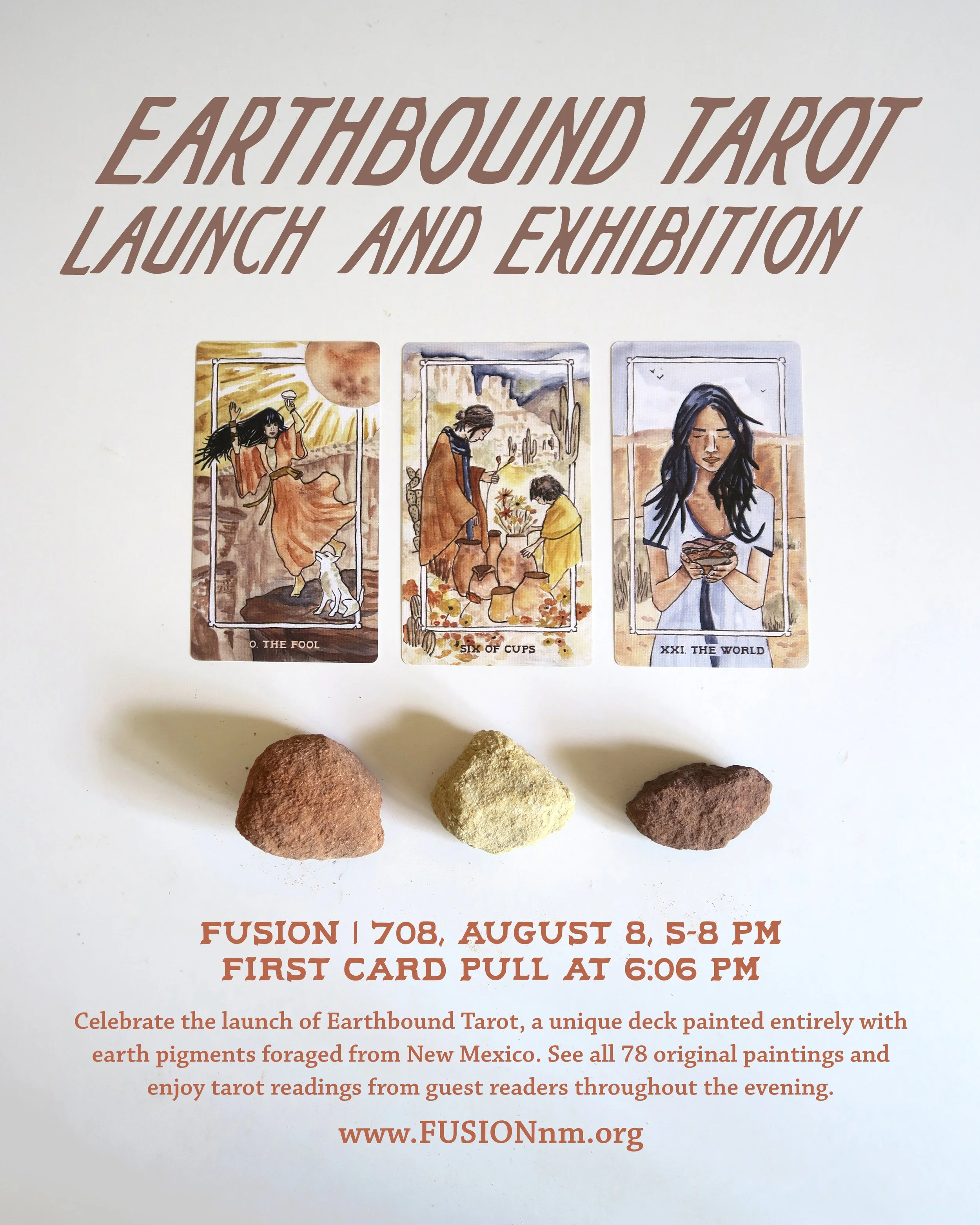 As part of the ABQ Artwalk and the ArtStop Market on Friday, August 8, from 5–8 PM, Celine Gordon is displaying all the art from her Earthbound Tarot deck for the first time at FUSION | 708!