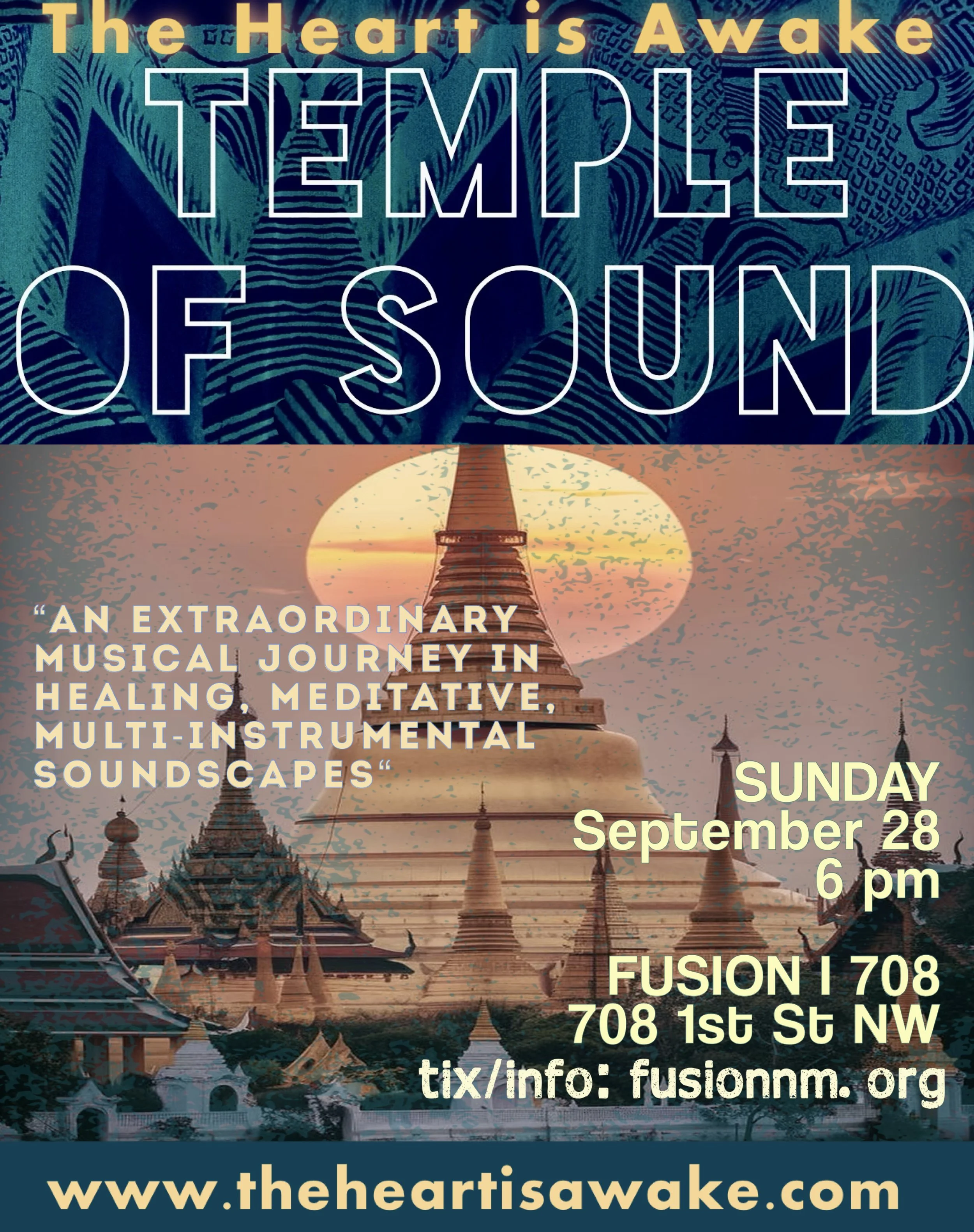 The HEART is AWAKE presents a new TEMPLE OF SOUND, bridging the worlds of experimental and psychedelic music with sacred sounds and vibrational journeys featuring special guest singers and a few surprises. You’re invited to experience a sound blessing from Shingetsu Billy White at FUSION | 708 on September 28, at 6 PM.