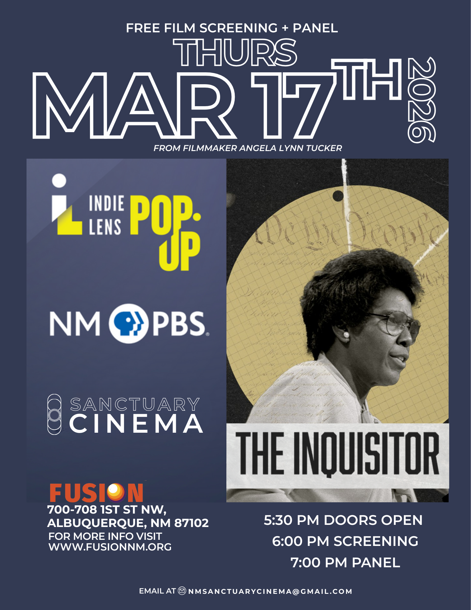 Sanctuary Cinema, Indie Lens, NMPBS & FUSION present THE INQUISITOR by Angela Lynn Tucker at FUSION on Wednesday, Tuesday, March 17, starting at 5:30 PM! The screening will be followed by a panel discussion.