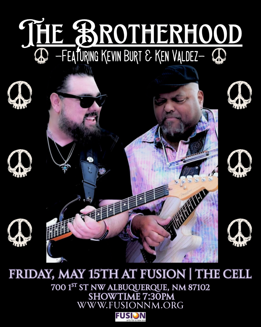 The Brotherhood Featuring Kevin Burt and Ken Valdez is making its way to the stage in FUSION | The Cell on Friday, May 15, at 7:30 PM (doors at 6:30 PM). Musically speaking, try to imagine what would happen if Bill Withers, Stevie Ray Vaughan, Ray Charles, and Santana were in a room together. This powerful show—brought to you by two well-known and respected names in blues, soul, and rock circles—has been bringing joy throughout the country with their electric performances, and now they are bringing it to FUSION!