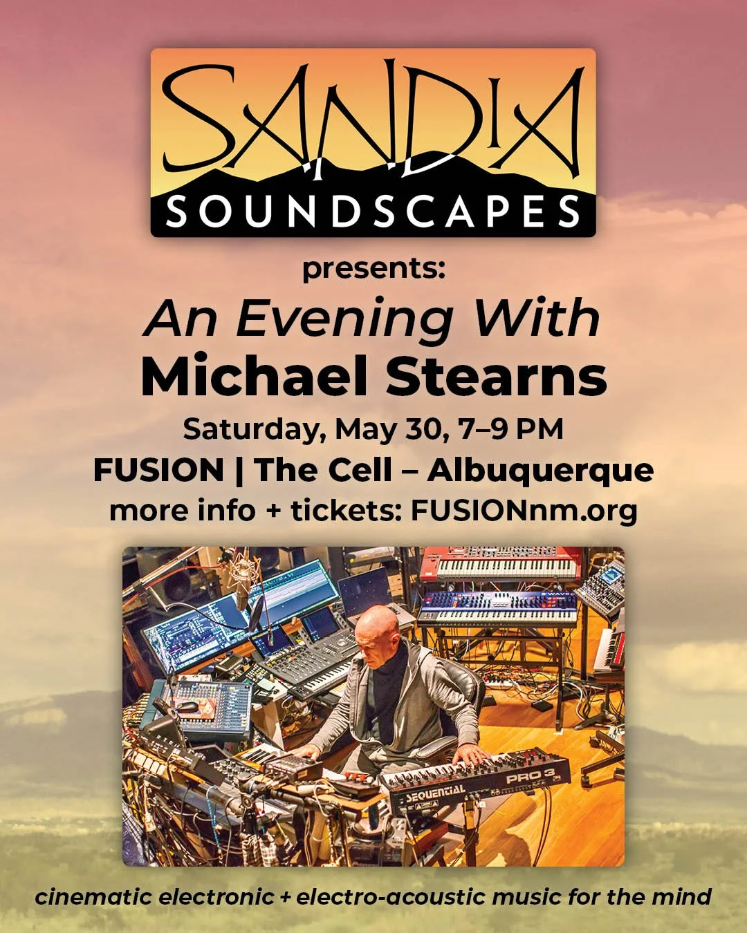 Sandia Soundscapes is bringing Michael Stearns to FUSION | The Cell on Saturday, May 30, at 7 PM (doors at 6:30 PM), for an evening of music for the mind.